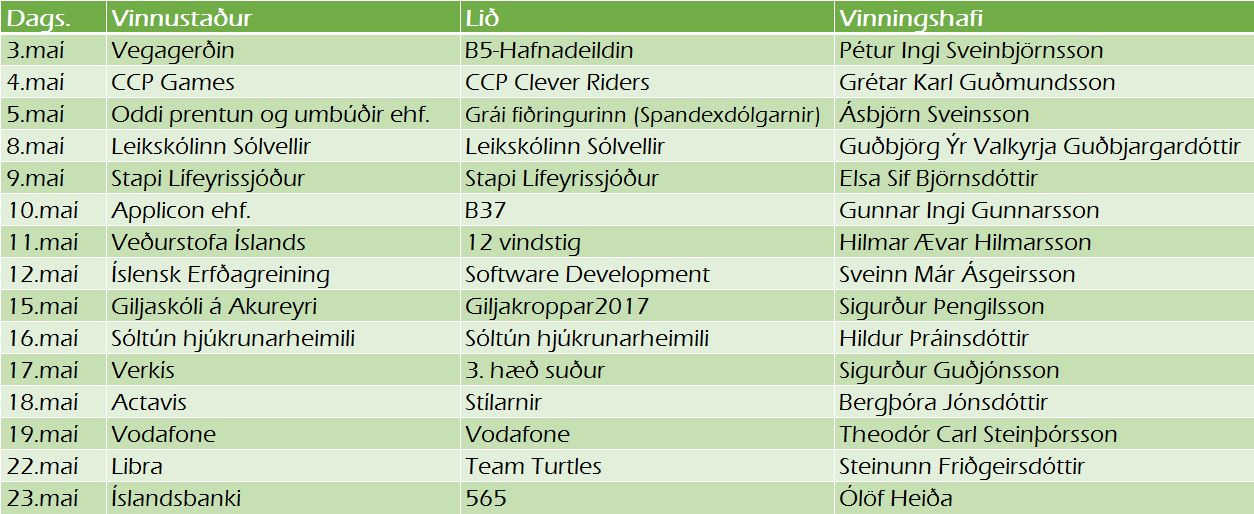 Vinningshafar í liðstjóraleiknum sem hljóta hraðamæla að gjöf eru eftirfarandi: